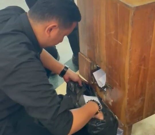 Kejadian masih di dalam gedung, ada pihak dari keluarga pengantin wanita yang dengan cepat sudah membuka kotak angpao alias amplop dengan sendirinya dan itu tanpa sepengetahuan dari pihak keluarga pengantin pria, hanya disaksikan dari pihak WO, saat membuka kotak angpau serta memasukkan amplop ke dalam kantong plastik warna hitam.