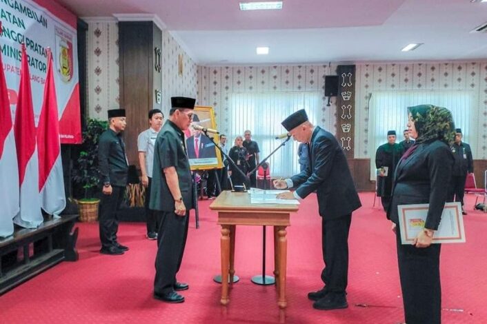 Semua Pejabat juga harus dapat menjaga citra aparatur. Jaga kode etik dan etika ASN. Jadilah tauladan bagi bawahan dan Masyarakat, selalu perhatikan dan tingkatkan pelayanan kepada Masyarakat, karena salah satu tugas utama dari ASN adalah melayani masyarakat dengan sebaik-baiknya,” ujarnya.