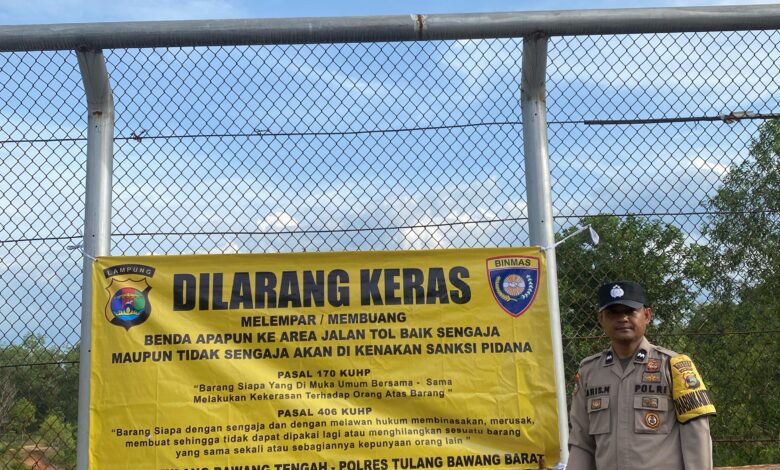 Polsek Tulang Bawang Tengah Pasang Dua Spanduk Himbauan Larangan Pelemparan Batu di Jalan Tol