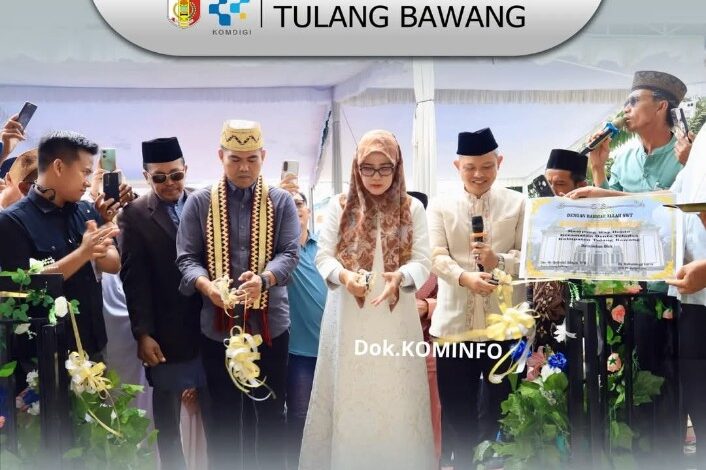 Lampung24.com, Tulang Bawang, 26 September 2025 – Ketua TP PKK Kabupaten Tulang Bawang, Ny. Herlinawati Qudrotul., SH menghadiri Pengajian Akbar sekaligus meresmikan Masjid Baiturroham yang berlokasi di Kampung Way Dente, Kecamatan Dente Teladas.
